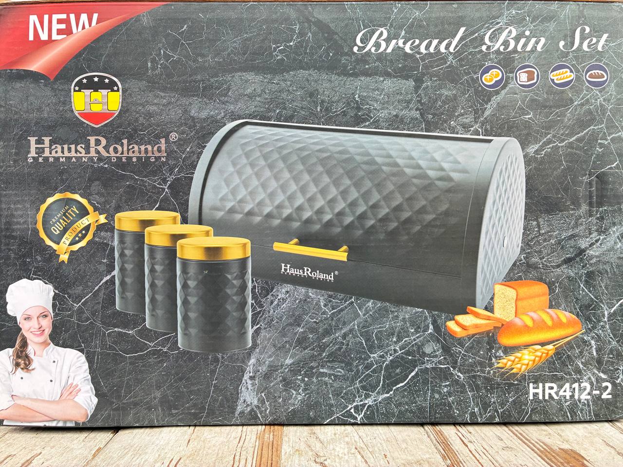 HR412-2. Набор хлебница + 3 банки для сыпучих.